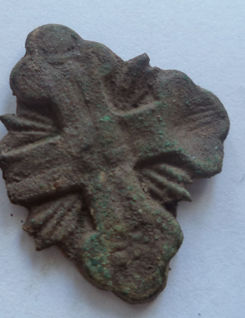 Уважаемые друзья, помогите распознать, что это такое? Материал тонкая латунь, имеется крепление, один луч обломан.