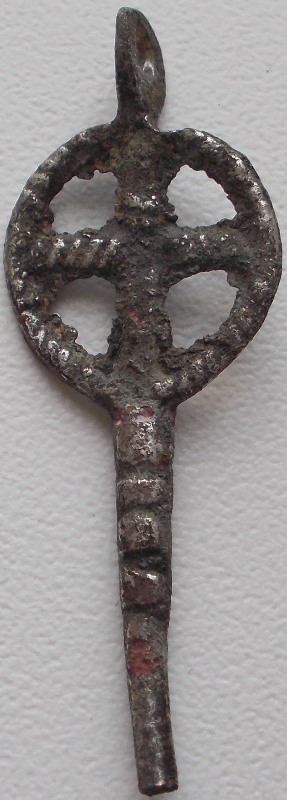 "...В начале XII века в Новгороде появляются булавки с кольцом, продетым через головку. Подобные булавки были широко распространены в Прибалтике. В Новгороде их известно около 20, большая часть булавок этого типа ограничена хронологическими рамками конца XII века — первой половиной XIII века (12 экземпляров)." /Л. В. Покровская/
