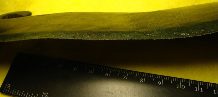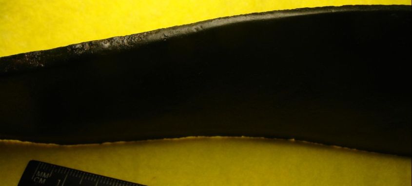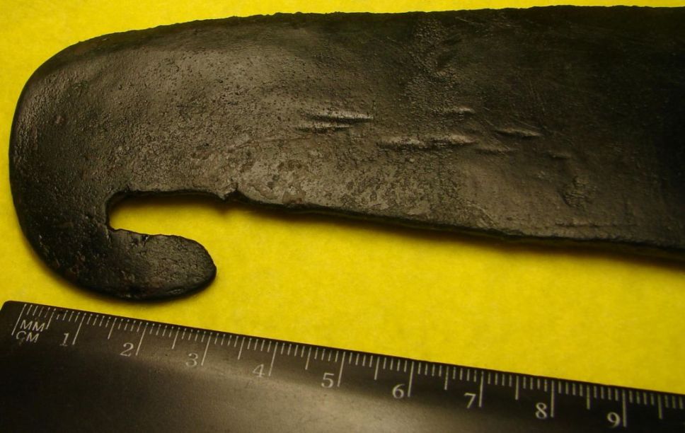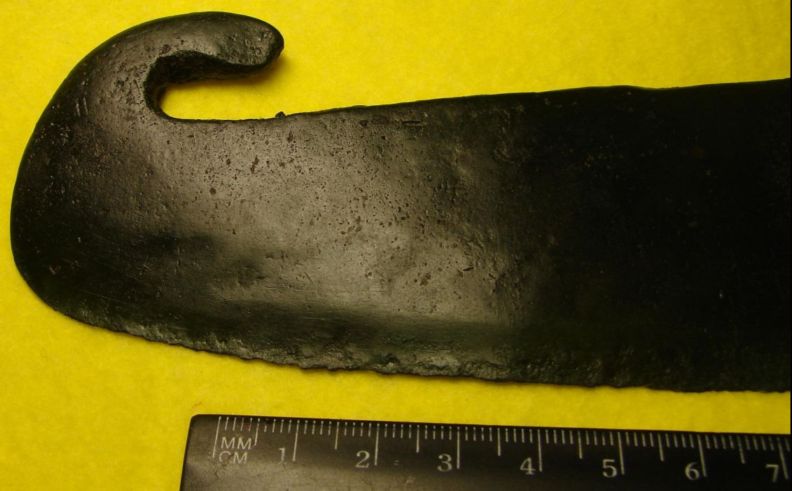 Что ещё хочу заметить, данный предмет литой, это очень хорошо видно на фото, по всем плоскостям не найдено ни какой обработки придмета, но само лезвие так сказать, нижняя сторона-заточена путём ковки.