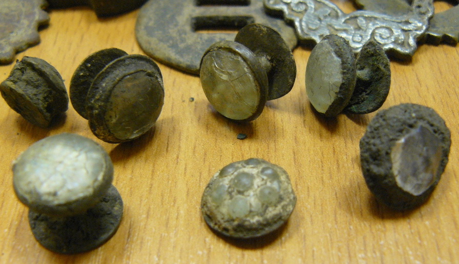 У меня кучка таких стекляшек на месте конюшни найдена с пряжками и заклёпками, практически уздечка в сборе :D